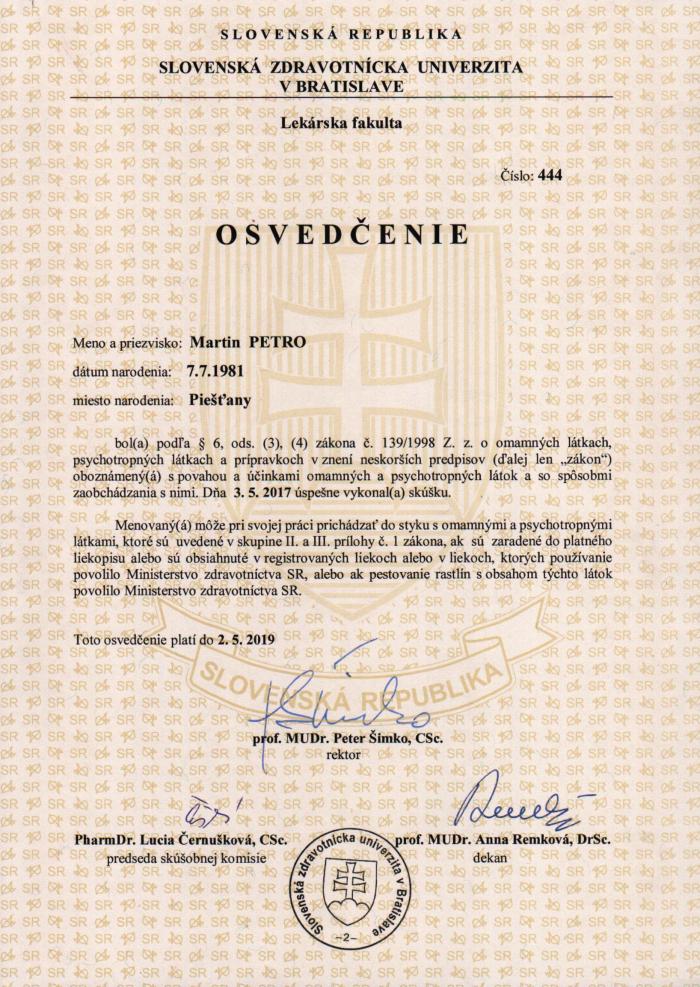 Osvedčnie na prácu s omamnými a psychotropnými látkami